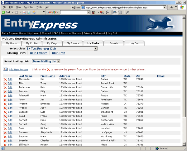 Manage your club mailing list. A club can have multiple mailing lists. A seperate hunt test and field trial list for example.