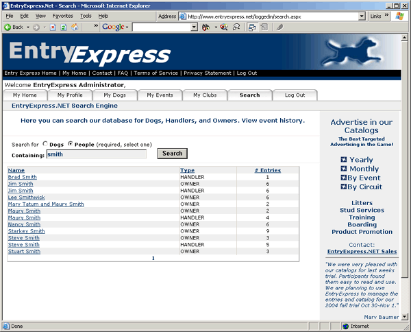 Find people. Every owner or handler in our system.
